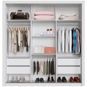 O Guarda Roupa Casal Panama conta com ferragens de qualidade, portas de correr com trilho superior e inferior em aluminio e sistema de deslizamento suave garantindo melhor funcionamento. O aproveitamento interno e ideal para um casal. Sao diversos nichos que facilitam a organizacao de roupas, calcados e acessorios. O tubo cabideiro e metalico, muito resistente e possui espaco para roupas longas.