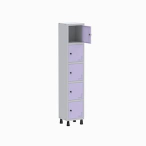 Armário Roupeiro de Aço totalmente montável, dispensa a utilização de parafusos, estrutura em chapas #24 e #26 (0,60mm e 0,45mm) conta com uma porta com estampos circulares em formação triangular para ventilação, sistema de fechamento de varão de 3 pontos, através de pitão para cadeado. Em conformidade com as normas NR17. Acabamento da Porta: Pintura Ambiente Principal: Escritório Complexidade da Montagem: Média: pode ser montado por mais de uma pessoa e/ou necessite de maior conhecimento para montagem Cor: Cinza/Lilás Cor do Produto: Cinza/Lilas Cor Interna: Cinza/Lilas Escala de Brilho: Semi-Fosco Escala de Brilho da Porta: Semi-Brilho Itens Inclusos: 1 Armário e Manual de Montagem. Linha ou Coleção: AÇO Manual de Montagem e Instalação: https://product-hub-prd.madeiramadeira.com.br/932197/documents/3f3270c9-4773-4fd8-b1bb-248d0c7ede060130Roupeiro20Linha20Light.pdf Material da Porta: Aço Material do Puxador da Porta: Poliestireno Material dos Pés: Polipropileno Material Principal: Aço Necessita Montagem: Sim Origem do Produto: Nacional Pés Reguláveis: Sim Peso: 11,2531 kg Possui Espelho: Não Possui Pés: 04 Possui Portas: 05 Possui Prateleiras: Não Recomendações de Uso, Manutenção e Limpeza: Utilizar um pano levemente umedecido com água, para finalizar utilizar um pano seco. Sapatas Niveladoras: Sim Sistema de Montagem: Parafuso Suporta Até (kg): 20 kg Tipo de Dobradiça/Corrediça da Porta: Aço Tipo de Puxador da Porta: Externo