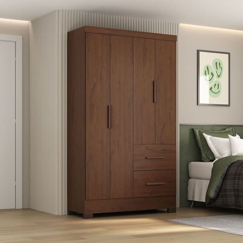 O Guarda Roupa Primordial Max é um produto com excelente divisão interna, duas gavetas que deslizam suavemente sobre corrediças metálicas, três prateleiras para guardar objetos ou roupas que precisam ser dobradas, cabideiro para pendurar as roupas com organização, possui também quatro pés, ideal para efetuar a limpeza em baixo do guarda roupa. Seu quarto ficará muito mais organizado e confortável. Demais né? Aproveite. Acabamento da Prateleira: Pintura Texturizada UV Escala de Brilho da Prateleira: Fosco Possui Cabideiros: 01 Acabamento da Gaveta: Pintura Texturizada UV Escala de Brilho da Gaveta: Fosco Material do Puxador da Gaveta: MDF Possui Organizador de Gaveta: Não Acabamento da Porta: Pintura Texturizada UV Escala de Brilho da Porta: Fosco Material do Puxador da Porta: MDF Acabamento dos Pés: Poliéster Altura dos Pés: 5 cm Ambiente Principal: Quarto codigo_ean: 7909903877944 Complexidade da Montagem: Alta: deve ser montado por um montador especializado Cor: Jacarandá Cor do Produto: Jacaranda Cor Interna: Jacaranda Escala de Brilho: Fosco Gaveta com Chave: Não Itens Inclusos: 1 - Roupeiro Primordial Max 4 portas e 2 Gavetas + Manual de Montagem Linha ou Coleção: Primordial Manual de Montagem e Instalação: https://product-hub-prd.madeiramadeira.com.br/910053/documents/c5e777e8-4f50-4d06-be78-1b5202254dc52roupeiroprimordialmax4p2g.pdf Material da Gaveta: MDP Material da Porta: MDP Material da Prateleira: MDP Material dos Pés: Plástico Material Principal: MDP modular: Não Montagem Flex: Não Necessita Montagem: Sim Origem do Produto: Nacional Peso: 69,5 kg Peso Máximo por Gaveta: 3 kg Peso Máximo por Prateleira: 3 kg Possui Calceiros: Não Possui Espaço para Vestidos Longos: Não Possui Espelho: Não Possui Espelho Interno: Não Possui Ganchos: Não Possui iluminação: Não Possui Nichos: Não Possui Painel de TV: Não Possui Pés: 04 Possui Portas: Sim Possui Prateleiras: Sim Possui Sapateira: Não Produto Montado: Sim Quantidade de Gavetas: 02 Gavetas Quantidade de Prateleiras: 03 Prateleiras Recomendações de Uso, Manutenção e Limpeza: Limpar com flanela ou pano macio seco, não utilizar produtos abrasivos, desengordurantes, álcool ou qualquer outro produto químico. Não expor o produto diretamente à luz solar e à umidade Sapatas Niveladoras: Não Sistema de Montagem: Parafusos auto atarraxantes, cola, cavilhas, pregos Tipo de Corrediça da Gaveta: Metálica Simples Tipo de Dobradiça/Corrediça da Porta: Metálica Tipo de Gaveta: Externa Tipo de Guarda-Roupa: Solteiro Tipo de Puxador da Gaveta: Externo Tipo de Puxador da Porta: Externo