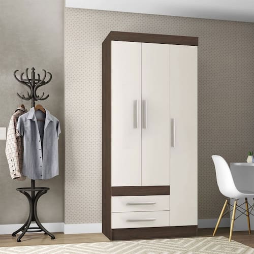 O Roupeiro Solteiro 3 portas 2 gavetas Cusco Poliman M?veis ? compacto e perfeito para deixar seu quarto organizado. Com prateleiras, cabideiro de alum?nio, 03 portas de bater, 02 gavetas externas com corredi?as met?licas, dobradi?as met?licas resistentes e puxadores em pol?mero cromado. Acompanha p?s em PVC fixo de 7cm de uso opcional, podendo variar a altura do produto de 182cm sem p?s para 189cm com p?s. Produto em MDP pintura UV, ecologicamente correto com embalagens preparadas para evitar avarias e permitir que o produto chegue em perfeito estado em sua casa. Perfeita combina??o com os mais variados ambientes. Qualidade que s? a Poliman oferece em seus produtos.