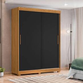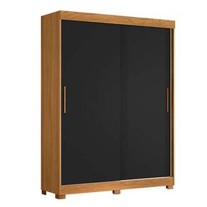 01 Guarda Roupa Spin com 2 Portas e 2 Gavetas Sem Espelho em Preto com Carvalho