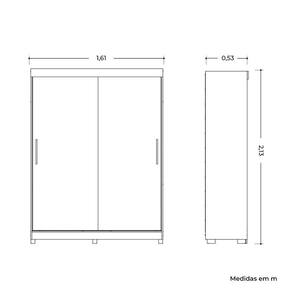 Conta com 2 portas de correr, sendo 1 espelho colado na parte externa, com sistema de freios deslizantes, trilho inferior de aluminio e puxadores de MDF revestidos.