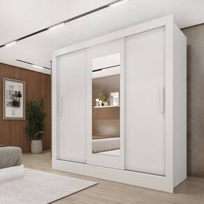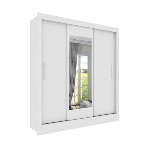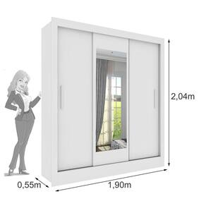 Roupeiro Valência Com Espelho 3 Portas De Correr Tcil Neve - Branco
