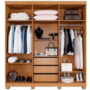 O Roupeiro Verona foi desenvolvido para oferecer praticidade e durabilidade ao seu dia a dia. Produzido em chapa de 15 mm, proporciona estrutura robusta e maior vida útil ao móvel. Conta com 6 portas, 3 gavetas com corrediças telescópicas, 7 prateleiras bem distribuídas e cabideiro em alumínio, ideal para manter roupas e acessórios sempre organizados.