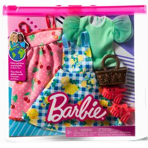 Vista a boneca Barbie para qualquer desafio com um guarda-roupa para qualquer ocasião! Com roupas e acessórios para duas roupas completas em um pacote, esses conjuntos de roupas Barbie são o dobro da diversão (boneca vendida separadamente). Vestidos, jaquetas, blusas e calças e dois acessórios estão incluídos para ajudar a completar o visual. Misture e combine as peças entre si e com outras roupas da linha para criar diferentes looks e descobrir seu próprio estilo. Inclui duas roupas e dois acessórios, boneca não incluída. Ajuste universal projetado para a maioria das bonecas Barbie.