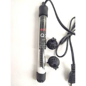Termostato com aquecedor submerso em tubo de quartzo resistente para aquários marinhos ou aquários de água doce. Resistência de inox Permite a manutenção da temperatura da água do aquário entre 16° e 32°c. Para uso somente em aquários de até 25 litros, totalmente submerso, fixado através de ventosas. Ean: 7898507851811