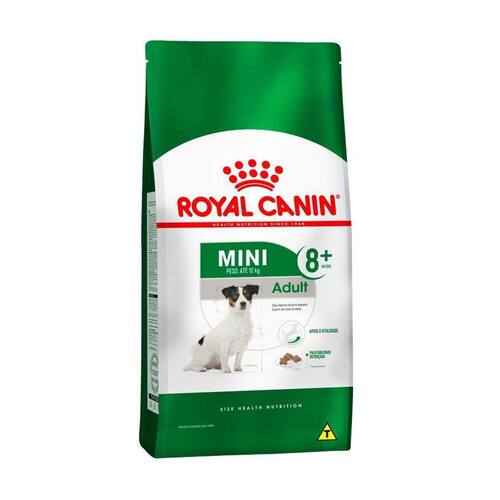 Ração Royal Canin Mini Adult 8+ Para Cães Adultos Raça Pequena - 7,5kg- Ração super premium indicada para cães de pequeno porte acima de 8 anos de idade. - Apoio à vitalidade: Contém nutrientes que ajudam a manter a vitalidade dos cães de raças pequenas frente aos primeiros sinais de envelhecimento. - Satisfaz apetites delicados - Peso Ideal: Ajuda os cães de pequeno porte a manter o peso ideal, satisfazendo as suas elevadas necessidades energéticas; - Saúde Dental: Auxilia a reduzir a formação de tártaro graças a agentes quelantes de cálcio;