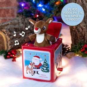 Rudolph Jack in the Box: Oferecendo uma surpresa maravilhosa toda vez que abre, este jack especial na caixa toca "Rudolph, a Rena de Nariz Vermelho" quando a alça é virada. O brinquedo brilhante e alegre certamente encantará os pequenos de novo e de novo. Idade seis meses ou mais, 6,5 por 5 por 5,5 polegadas quando fechado.