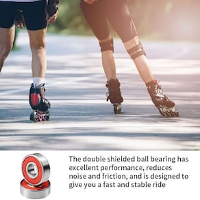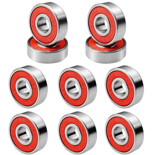 Estos rulemanes dobles para ruedas de patineta están fabricados con acero de alta elasticidad, lo que los hace más duraderos. La rueda ancha elástica HR-100A es adecuada para terrenos irregulares, como asfalto, caminos de mármol/cemento o half pipes, entre otros. Recibirás diez rulemanes para combinar con las ruedas de tu patineta o longboard de cuatro ruedas. Características: - Rulemanes para patineta - Color: Rojo - Material: Acero - Tamaño: Diámetro interno: 0,7 cm (0,28 pulg.) Diámetro externo: 2,2 cm (0,87 pulg.) Altura: 0,8 cm (0,31 pulg.) - Especificación: 608RS- ABEC-7 - El paquete incluye 10 rulemanes de bolas de ranura profunda 608RS- ABEC-7 en color rojo Incluye: 10 rulemanes para patineta - El rulemán de bolas doblemente protegido ofrece un excelente rendimiento, reduce el ruido y la fricción, diseñado para ofrecerte un viaje rápido y estable - Los rulemanes de reemplazo para scooters son ideales para patinetas, patines, scooters, longboards, juguetes, herramientas eléctricas y ruedas de diversos tamaños - La clasificación ABEC-7 de los rulemanes representa calidad, suavidad y velocidad, proporcionando una experiencia más suave y silenciosa - Los rulemanes para patinaje están hechos de acero, con jaula robusta que separa las bolas uniformemente para disminuir vibraciones y ruido, logrando alta velocidad - Sello de goma doble capa para evitar la entrada de contaminantes, conservar lubricantes, mejorar el rendimiento y prolongar la vida útil