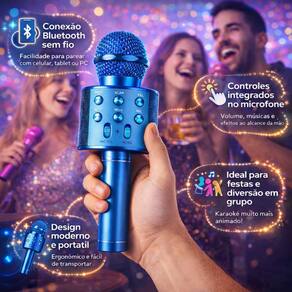 S-32386 microfone blut dourado Microfone bluetooth sem fio youtuber karaoke infantil Diversão em cores Conexão bluetooth Portátil e fácil de usar Som de alta qualidade Compatível com celular/tablet/pc Homologação Anatel: 101412208726 Marca: Não Informado