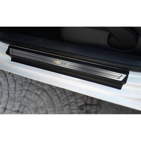 Fabricado em aço inox 304 o kit soleiras, vinil, pedaleiras e descanso de pé além de ajudar a proteger o local onde há o desgaste devido o calçado ficar o tempo todo esfregando, deixará o interior do veículo personalizado e com muito mais estilo.