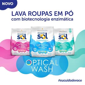 Pensando em formas de facilitar o dia a dia, desenvolvemos uma novidade para você, o lava roupas pó optical wash.