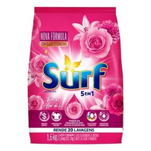 Sabao em po surf 1,6kg rosa flor de liz O sabão em pó surf 5 em 1 rosas e flor-de-lis te dá muitos benefícios por menos em um único sabão em pó para lavar roupas você encontra poder de limpeza, fragrância intensa e duradoura, e bom custo-benefício, que alveja o branco, tira manchas e cuida da cor todos os benefícios a um preço acessível experimente a sensação de roupa recém-lavada e limpa com o sabão em pó surf 5 em 1 rosas e flor-de-lis. Sua fórmula oferece a solução completa e foi desenhada para entregar tudo o que você espera de um sabão em pó em um produto fácil e simples de usar. A marca surf não está aqui apenas para lavar roupas, mas sim para ajudar você a se sentir confiante e confortável com você mesma. Ajuste a dosagem: surf 5 em 1 agora vem com a nova tecnologia de único enxágue que economiza água, é concentrado e rende muito economia de água para você e para o planeta com apenas 1/2 xícara de chá Você lava uma máquina cheia