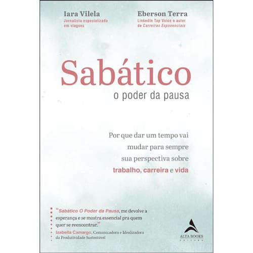 A Grande Resignação, fenômeno que levou milhares de profissionais a pedirem demissão, acendeu um sinal de alerta no mercado de trabalho: ninguém está mais disposto a arriscar a própria saúde mental por um emprego. O caminho que muitos escolhem é pausar a vida profissional por um tempo para viver outras experiências, que não cabem em uma rotina frenética e sem sentido. Sabático O Poder da Pausa provocou uma revolução dentro de mim. Me reconectou com a Tati de anos atrás, quando passei por um período sabático de 10 meses. Não foi exatamente planejado, e sim impulsionado por uma demissão e pelo câncer do meu pai. Dar um tempo na carreira e dedicar tempo para minha família foi a melhor decisão que já tomei na vida. Avaliei o que me fazia feliz e reencontrei o meu propósito empreendendo. Já pensou o impacto positivo na sua vida se você decidir fazer um também? ?Tatiana Pimenta, Fundadora e CEO da Vittude Vivemos em um contexto social que ignora a prevenção na maior parte do tempo, justamente por falta dele. Mas em detrimento do trabalho, ao mesmo tempo, reclama dos custos e consequências de uma vida de negligências com a saúde e com a necessidade de mais tempo. Por experiência própria posso dizer que é muito melhor cuidar da saúde enquanto há saúde e isso significa reconhecer os sinais, internos e externos, e desacelerar para continuar o movimento. Por isso, Sabático O Poder da Pausa, me devolve a esperança e se mostra essencial pra quem quer se reencontrar. Eberson e Iara são profundos e sensíveis com as palavras para conduzir o leitor à principal viagem da vida. Para dentro! ?Izabella Camargo, Comunicadora e Idealizadora da Produtividade Sustentável