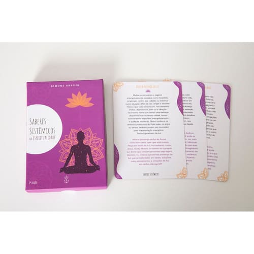 Saberes Sistêmicos na Espiritualidade O Saberes Sistêmicos na Espiritualidade é um livreto acompanhado por um conjunto de 39 cartas com conceitos e reflexões para você aplicar a espiritualidade na prática no seu dia a dia. As cartas são compostas por um conceito e atividades/reflexões para você aplicar em sua vida. Você quer aplicar a espiritualidade na prática na sua vida? Simone Arrojo estudiosa e praticante da espiritualidade na vida prática reflete os pilares da consciência como relação com os nossos antepassados, com o plano espiritual, com a verdade além da dualidade e com a nossa essência. O conteúdo estimula a percepção da nossa ligação direta com o plano espiritual, ensinando a ler os sinais do universo e a enxergar que tudo tem um propósito maior. Público: destinado a quaisquer pessoas que desejem aplicar a espiritualidade na prática no seu dia a dia. Muito utilizado também como fonte de insights para ajudantes, conselheiros, terapeutas de atendimento em grupo ou individual.