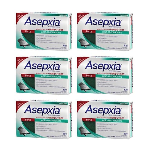 Descrição Sabonete Asepxia 80g Formula Forte é ideal para peles com excesso de oleosidade. Realiza uma limpeza profunda. Remove as células mortas e mantém a pele limpa, sem cravos e espinhas. A presença do exclusivo composto Antiacnil-3 reduz o excesso de oleosidade, limpando sua pele profundamente, prevenindo o surgimento de novos cravos e espinhas. Modo de usar Aplique com uma leve massagem no rosto úmido, de manhã e à noite, insistindo nas áreas com cravos e espinhas. Enxágue logo em seguida. Ean: 7908825722981
