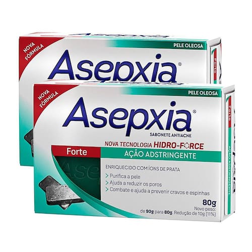SABONETE ASEPXIA FORTE Ideal para peles com excesso de oleosidade. Realiza uma limpeza profunda, removendo as células mortas. Mantém a pele limpa, sem cravos e espinhas. Enriquecido com íons de Prata, que purifica a pele, ajuda a reduzir o tamanho dos poros. Combate e ajuda a prevenir cravos e espinhas Modo de usar: Pela manhã e à noite, lave o rosto e corpo com o sabonete fazendo uma leve massagem principalmente nas zonas com cravos e espinhas. Enxágue com água abundante. Ean: 650240012730