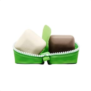 Estojo de viagem com sabonete em barra Drunk Elephant Baby Juju and Baby Pekee. Sabonete facial esfoliante e hidratante em barra. 1 onça cada. Estojo Travel Duo +.