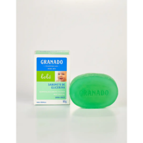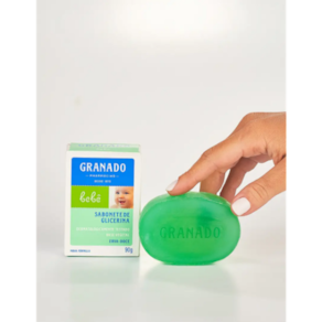 Formulado com glicerina vegetal, o sabonete limpa com suavidade a pele do bebê, deixando-a macia e perfumada.