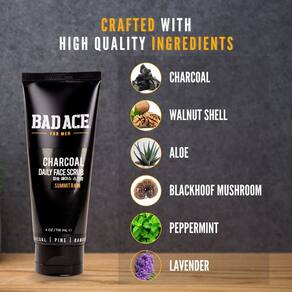 - Esfoliante de limpeza profunda – Com pó de carvão ativado e casca de nogueira, este limpador facial para homens elimina o excesso de óleo sem remover a umidade da pele. Este esfoliante facial masculino remove sujeira, óleo, cravos e impurezas.