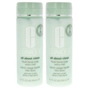 O sabonete facial líquido All About Clean da Clinique é um limpador líquido suave desenvolvido por dermatologistas, formulado especificamente para tipos de pele mista oleosa e oleosa.