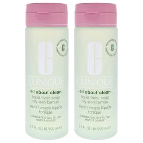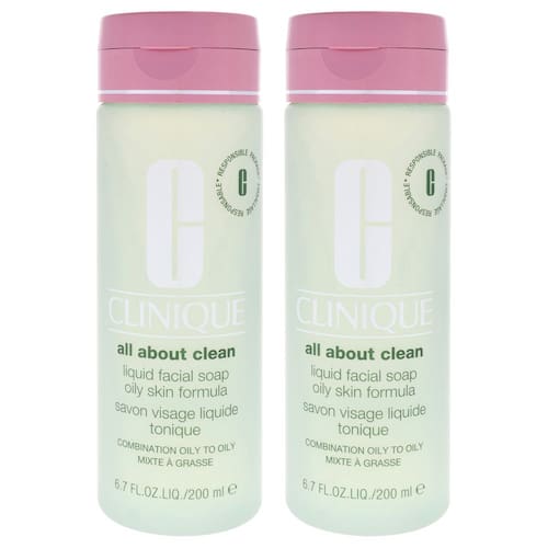 O sabonete facial líquido All About Clean da Clinique é um limpador líquido suave desenvolvido por dermatologistas, formulado especificamente para tipos de pele mista oleosa e oleosa.