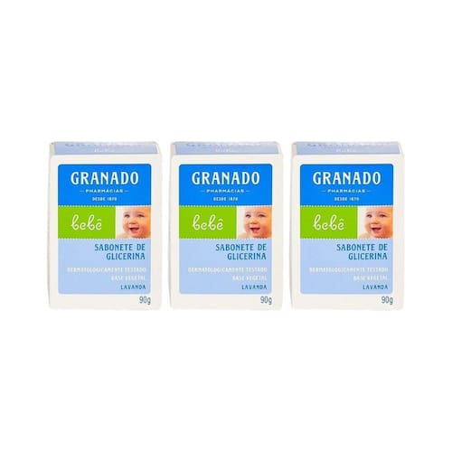 Na compra deste kit será enviado 03 unidades do sabonete granado baby 90g lavanda cada