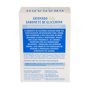 SABONETE INFANTIL GRANADO BEBÊ LAVANDA O Sabonete Infantil Granado Bebê Lavanda possui fragrância relaxante com base de glicerina 100%. É produzido sem gordura animal. Produto Hipoalergênico (formulad