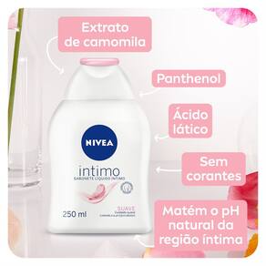 O que é? Sabonete líquido íntimo NIVEA Suave que limpa e protege a região íntima da mulher. Além de prevenir irritações, acalma a pele, pois contém extrato de camomila.