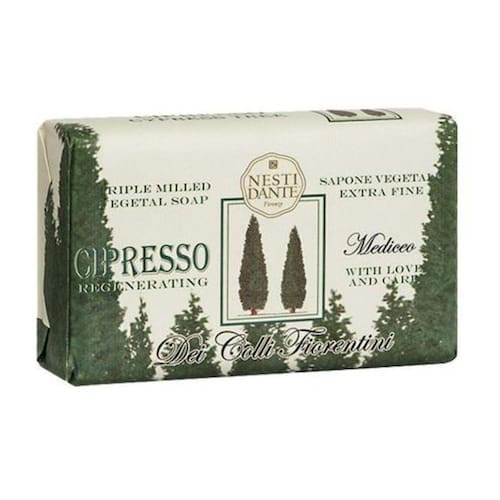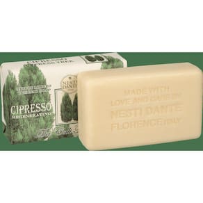 Sabonete Italiano Dei Colli Fiorentini Cipreste Regenerante Sabonete nesti dante dei colli fiorentini cipreste regenerante 250g - "o majestoso e sempre verde cipreste com sua fragrância de pinho fresco regenera a mente e o corpo". Diferencial nesti dante As essências utilizadas em cada produto são extraídas diretamente das flores, frutas e vegetais, que são cultivadas de forma sustentável e orgânica. Dessa forma, o produto é 100% natural, vegano, não agride a pele e não é testado em animais. Possuímos mais de 90 fragrâncias, criadas por perfumistas especializados e algumas delas se destacam: flores tradicionais da região da toscana, frutas dos pomares florentinos e aromas do mediterrâneo dentre outras tradicionais e exóticas. E tem mais, o cheirinho de novo permanece até o último fio de sabonete, pois as essências são misturadas a ele desde o início do processo produtivo, o que não acontece na maioria das outras indústrias. Por levar baixa porcentagem de água em sua composição, a durabilidade do nosso sabonete está acima do padrão e é altamente hidratante, sendo 250g de puro sabonete concentrados em cada embalagem. Ean: 837524000182