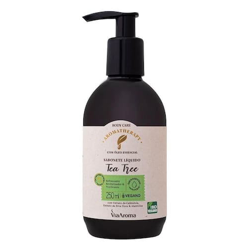 Sabonete Líquido Aromatherapy Tea Tree 250mL Via Aroma Sabonete Líquido Aromatherapy Tea Tree 250mL Via Aroma Experimente a limpeza hidratante e as propriedades purificantes do Sabonete Líquido Aromatherapy Tea Tree 250mL Via Aroma para o seu dia a dia.O Sabonete Líquido Tea Tree Via Aroma oferece uma experiência de limpeza hidratante única, enriquecida com as propriedades tonificantes do Óleo Essencial de Tea Tree . Sua fórmula exclusiva foi desenvolvida para não agredir a pele, prevenindo o ressecamento e proporcionando momentos de bem-estar na sua rotina de cuidados. Com um aroma herbal balsâmico, este sabonete é revitalizador da derme, deixando uma fragrância única e agradável. Ideal para todos os tipos de pele, é perfeito para uso nas mãos e corpo, oferecendo um cuidado completo. Diferenciais: Formulado com Óleo Essencial de Tea Tree , reconhecido por suas propriedades purificantes e antibacterianas.Proporciona limpeza hidratante sem ressecar a pele, ideal para uso diário.Produto dermatologicamente testado, não testado em animais, vegano e sem parabenos, garantindo um cuidado consciente e seguro.Apresenta um aroma herbal balsâmico, que proporciona uma sensação de revitalização e bem-estar. Mais sobre o Produto: O Sabonete Líquido Tea Tree da Via Aroma é uma escolha ideal para quem busca uma higiene eficaz aliada aos benefícios da aromaterapia.Sua composição suave é indicada para todos os tipos de pele, inclusive as mais sensíveis.O uso regular contribui para uma pele mais saudável, hidratada e com uma fragrância natural e agradável. Dicas de Uso: Para usar, aplique uma pequena quantidade do produto nas mãos ou em uma esponja e massageie até formar uma espuma cremosa. Esfregue suavemente para uma limpeza hidratante e enxágue em seguida.Advertências: Mantenha fora do alcance de crianças e animais domésticos. Uso externo. Não ingerir. Não aplique sobre a pele irritada ou lesionada. Evite contato com os olhos e a boca. Em caso de contato com os olhos, lave com água em abundância. Em caso de sensibilização, suspenda o uso. Produto fotossensível, evitar exposição ao sol após o uso. Contém ingredientes naturais, podendo apresentar alteração de cor sem comprometer a qualidade.Conservação: Mantenha o produto em lugar seco e ao abrigo da luz solar e do calor. Armazene o produto bem fechado, em temperatura ambiente e protegido da luz. Marca: Não Informado