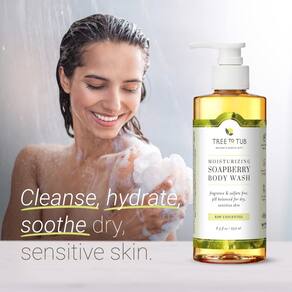 - Soapberry é um presente natural para peles sensíveis. Nosso sabonete corporal para pele seca contém sabão, aloe vera, pepino e camomila para dar uma limpeza mais gentil à pele delicada.