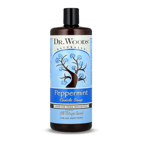 - Sabonete líquido de castela: o sabonete Dr. Woods Castile produz uma espuma incrivelmente rica que permite um enxágue profundo e equilibrado sem esforço. Limpa suavemente sem secar demais