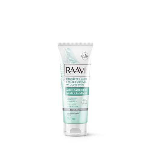 Sabonete Líquido Facial Controle da Oleosidade 150ml - Raavi Sabonete Liquido Controle da Oleosidade - Controle da oleosidade através da associação dos ativos Ácido Glicólico e Ácido Salicilico. Promove uma limpeza profunda e ajuda remover resíduos de maquiagem sem ressecar a pele. Sua fórmula contém ativo obtido por meio de processos biotecnológicos que contribui para uma hidratacao gradativa. Proporciona uma sensação de refrescancia e bem estar. Indicado para pele mista e oleosa.