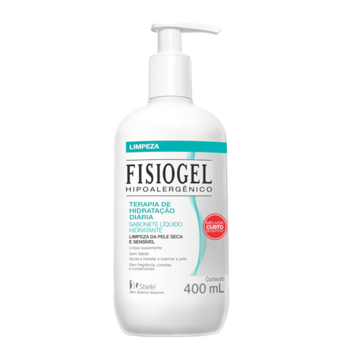 Sabonete líquido para peles secas e sensíveis. Fisiogel Terapia de Hidratação Diária promove limpeza hidratante para o corpo e o rosto, com suavidade e alívio para a sensação de repuxamento causado pelo ressecamento da pele.