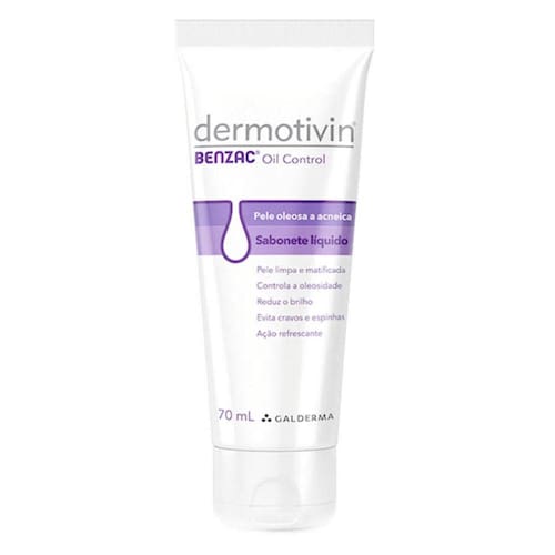 Sabonete líquido para pele oleosa e acnéica. Galderma Dermotivin Benzac além de não agredir a pele, formando uma filme protetor não oleoso e altamente hidratante.
