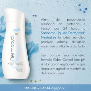 Sabonete Líquido Íntimo Dermacyd Neutralize 200ml Dermacyd é a marca de sabonete íntimo que está sempre ao seu lado porque conhece as necessidades e os desafios que as mulheres enfrentam diariamente.