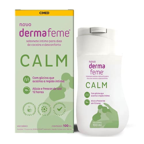 Sabonete Liquido Intimo Dermafeme Calm Você sabia que muitas mulheres sentem desconfortos vaginais ao longo da vida? Desenvolvido para proporcionar conforto e alívio no dia a dia, chegou o Dermafeme C