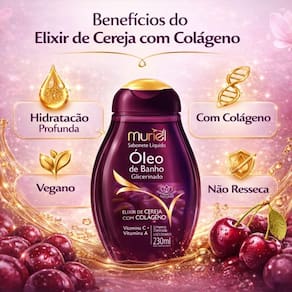 O Óleo de Banho Glicerinado Muriel Elixir de Cereja com Colágeno vai além da limpeza, criando uma camada protetora que previne o ressecamento e preserva a elasticidade natural da pele. Desfrute de um momento de indulgência e sinta a diferença de uma pele visivelmente mais saudável e radiante a cada uso.