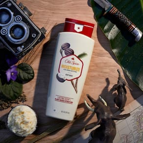 sabonete líquido Old Spice Moisturize tem aroma duradouro — Cheira a amora, framboesa preta, ameixa, baunilha e âmbar — Remove a
