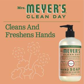 Sabonete para mãos MRS. MEYER'S CLEAN DAY, feito com óleos essenciais, fórmula biodegradável, gerânio, 12,5 fl. oz