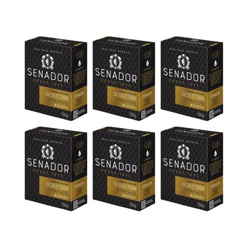 Sabonete senador 130g seduction - kit c/6un Descrição O sabonete senador 130g seduction foi desenvolvido para oferecer uma experiência de banho marcante, com uma fragrância sedutora que desperta os sentidos. Sua fórmula exclusiva proporciona uma limpeza profunda e eficaz, removendo as impurezas sem ressecar a pele. Enriquecido com ingredientes que preservam a hidratação natural, este sabonete deixa a pele macia e com um toque suave, perfeito para o uso diário. A fragrância envolvente e duradoura do sabonete senador seduction combina notas sensuais e amadeiradas, criando uma aura de mistério e atração que permanece ao longo do dia. A barra de 130g do sabonete senador seduction é generosa e oferece um excelente rendimento, tornando-se um aliado no cuidado pessoal masculino. Sua espuma cremosa e abundante garante uma aplicação fácil e agradável, enquanto a fragrância sofisticada transforma o banho em um momento de prazer e cuidado especial. Este sabonete é ideal para homens que buscam destacar sua personalidade através de uma fragrância intensa e irresistível, sem abrir mão da qualidade no cuidado com a pele. Modo de uso Molhe o corpo ou as mãos e esfregue o sabonete até obter uma espuma rica e cremosa. Aplique a espuma sobre a pele, massageando suavemente em movimentos circulares para garantir uma limpeza completa. Enxágue bem com água morna, certificando-se de remover todo o resíduo de sabonete. Se necessário, repita o processo em áreas que exigem uma atenção maior, como o pescoço e os ombros. Após o banho, seque a pele com uma toalha macia, preservando a hidratação e a fragrância sedutora do sabonete senador seduction. Marca: Não Informado