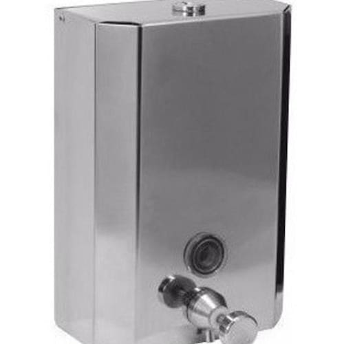 Saboneteira 2 Litros Em Aço Inox 304 Com Fechadura Aboneteira industrial em aço inox com fechadura 2L Produzida em aço inox AISI 304, sistema de válvula em latão cromado, visor cristal transparente, o que permite o controle da substituição do sabonete. Acompanha chave e kit contendo buchas e parafusos para fixação na parede. Disponível nas opções: J16 - Com fechadura J16a - Sem fechadura Capacidade do reservatório: 2L Medidas: 240mm (altura) x 152mm (largura) x 130mm (profundidade).