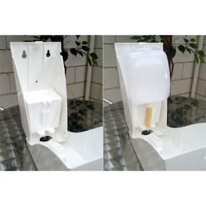 Dispenser Ag+ para sabonete Liquido ou Alcool em Gel - 800 ml Saboneteira ou Dispensador automático de sabonete Liquido ou alcool em gel, com acionamento manual, com visor e chave. Design sofisticado e resistente. ESPECIFICACOES TECNICAS: - Capacidade: 800 ml - Matéria Prima: Plastico com aditivo de íons de prata - Dimensões: A: 24cm L: 13,5cm C: 11,5cm - Acionamento: Manual - Cor: Branco - Peso: 0,360 Kg ITENS INCLUSOS: - 01 Saboneteira sem reservatório - 01 Chave plastica -02 parafusos -02 buchas de fixação Ean: 7898599160730
