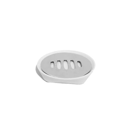 Saboneteira branca e detalhe metalizado. Porta sabonete em barra fabricado em poliestireno material de qualidade, 100% reciclável, atóxico e livres de Bisfenol A (BPA Free).