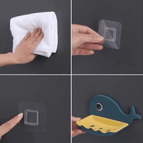 É fixado na parede através de seu potente adesivo, sem sujeira, sem complicação. Possui base removível para facilitar na limpeza e furos para escoar a água e manter o sabonete como novo por mais tempo. Multifunção, utilize no banheiro, cozinha, como porta joias ou como sua imaginação mandar.
