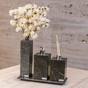 Produzida à mão por talentosos artesãos em Minas Gerais, esta elegante saboneteira é ideal para armazenar sabonete líquido e alcool em gel entre outros líquidos, com sofisticação e originalidade. Cada peça é única devido a uma característica especial: os veios do mármore; sendo uma pedra natural, nenhuma peça tem exatamente o mesmo desenho, tornando os veios do mármore comparáveis a impressões digitais. Essa peculiaridade adiciona um charme exclusivo e faz de cada item uma verdadeira obra de arte.