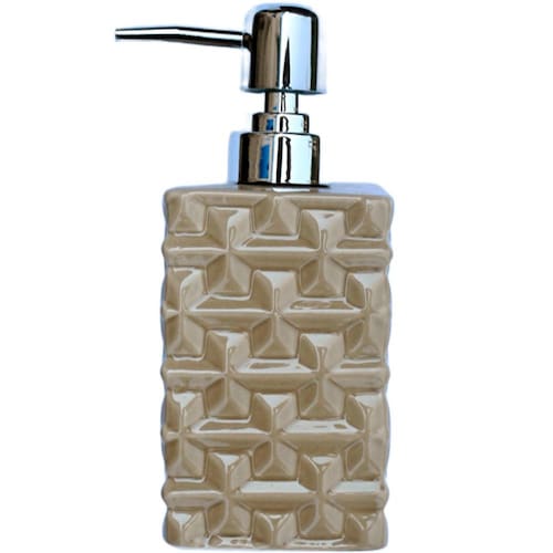 1 Porta Saboneteira Líquida Bege e Prata De 350ml;