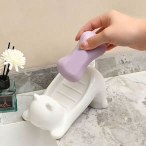 Saboneteira em formato de gato é ideal para amantes de pet e que desejam enfeitar o seu banheiro. A saboneteira possui orifício de drenagem em forma de favo de mel, filtra rapidamente a umidade, evitando que o sabão amoleça e grude!