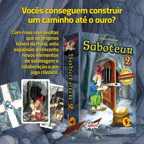 Saboteur 2 é a expansão do consagrado jogo de cartas Saboteur, trazendo novos personagens, times rivais e cartas especiais que aumentam a tensão, o blefe e a diversão das partidas. Ideal para quem quer turbinar o jogo base com mais estratégias, reviravoltas e surpresas